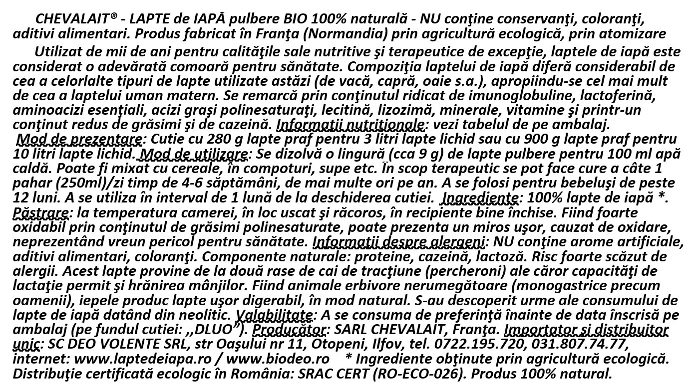 CHEVALAIT – LAPTE de IAPA pulbere BIO 100% naturala